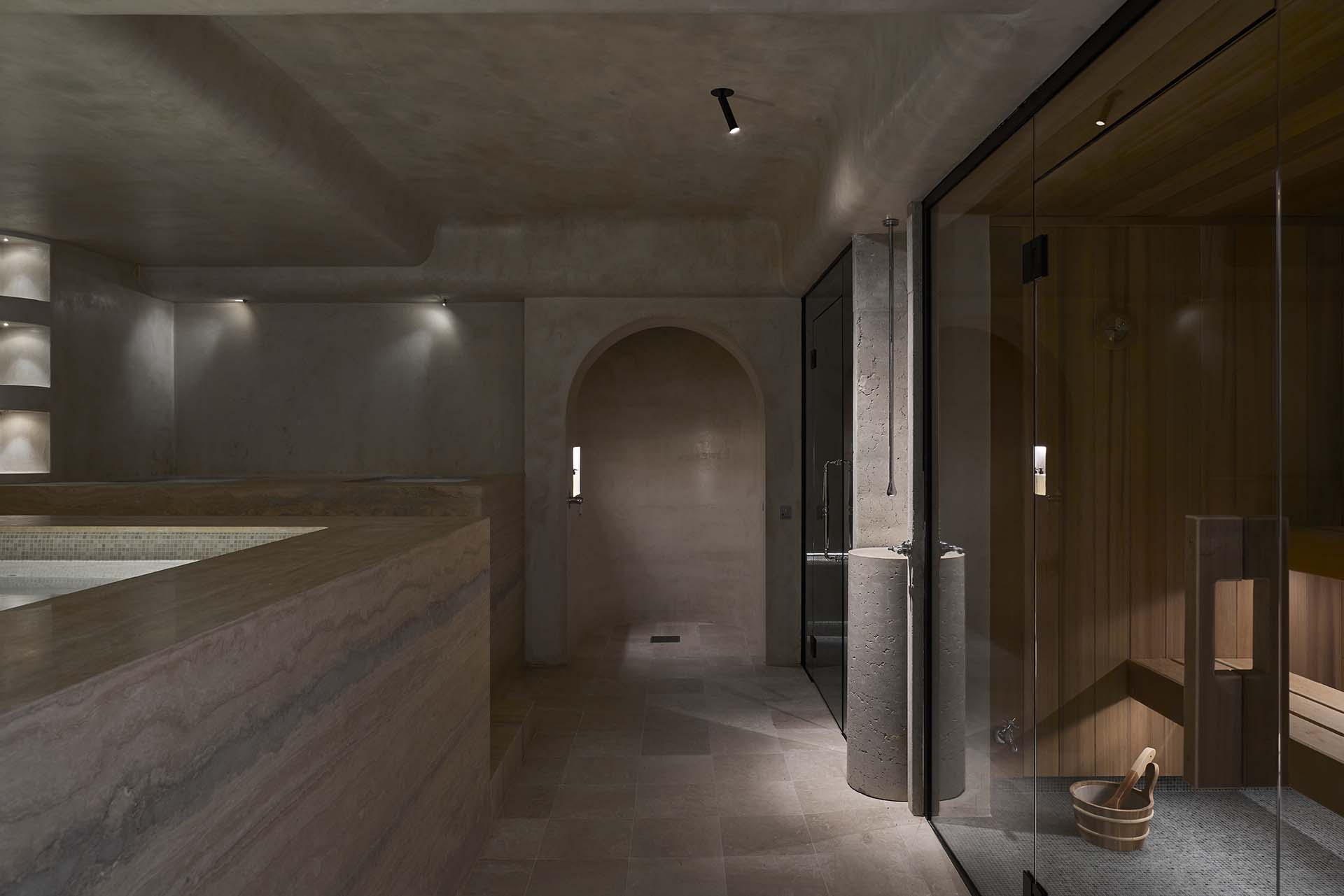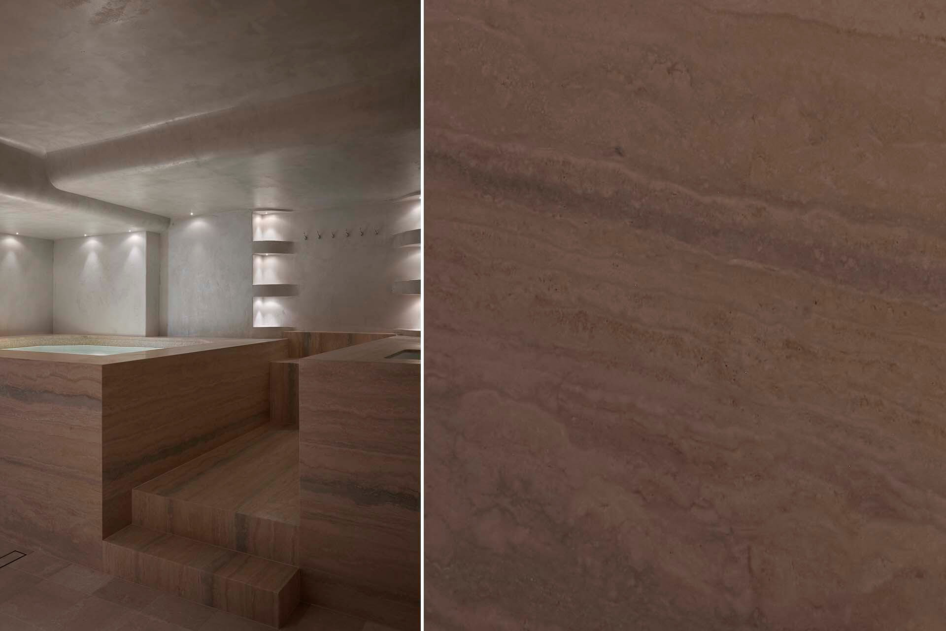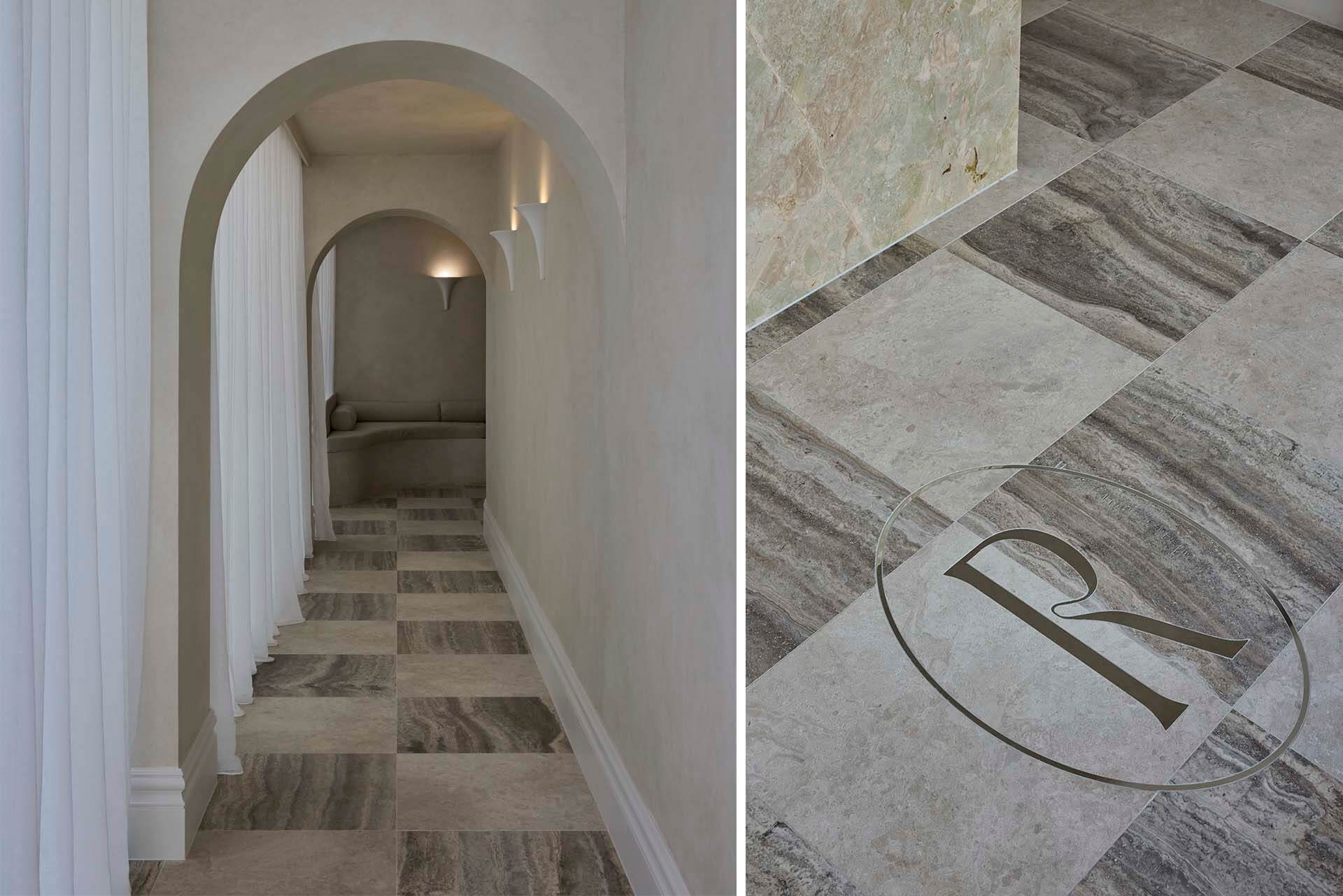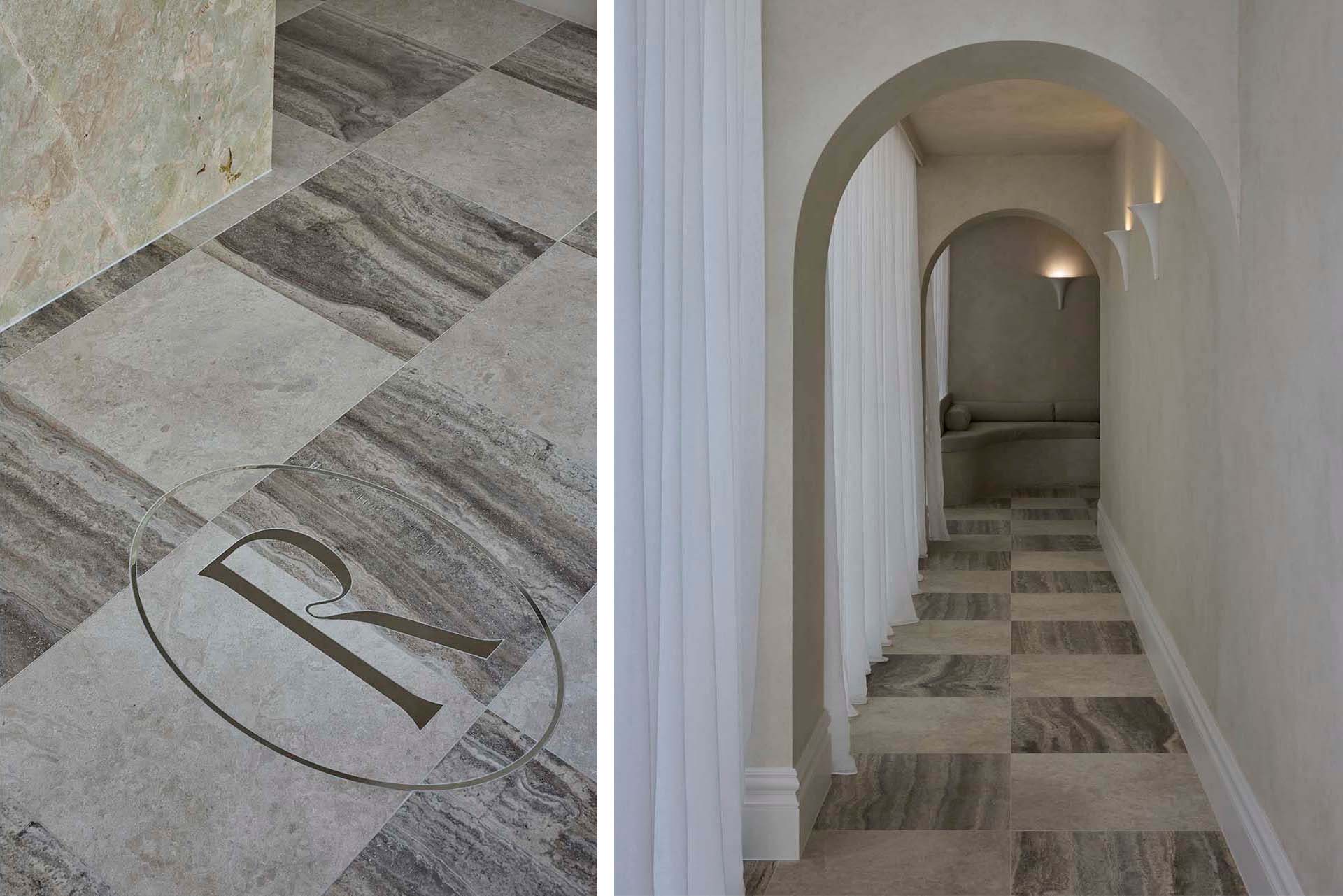 With a holistic approach to wellbeing, the wellness venue achieves barfefoot luxury through natural, organic materials such as our Savannah Marble in Antique finish and Titanium Travertine, showed beautifully in a checkerboard pattern.